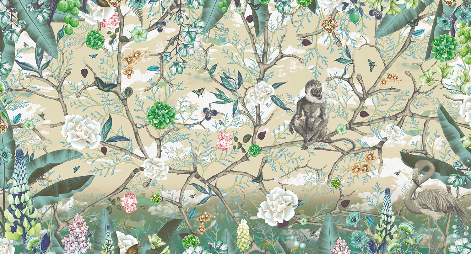 Presentamos dos murales perfectos para vestir una pared de un dormitorio, creando un punto de atención en el espacio fácil de combinar con la pintura y el mobiliario. Los diseños que hemos escogido son Honolulu sky, en el cual, la luz natural es imprescindible para acompañar el ambiente; y Lost world, perfecto para combinarlo con elementos decorativos exóticos, tropicales y naturales.